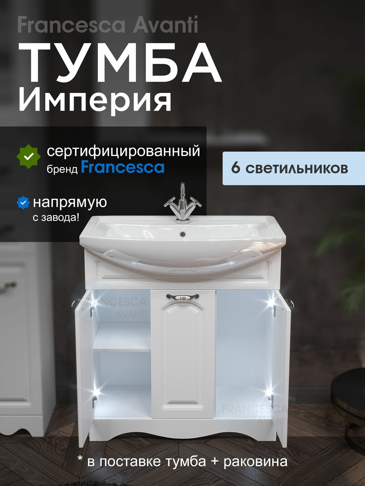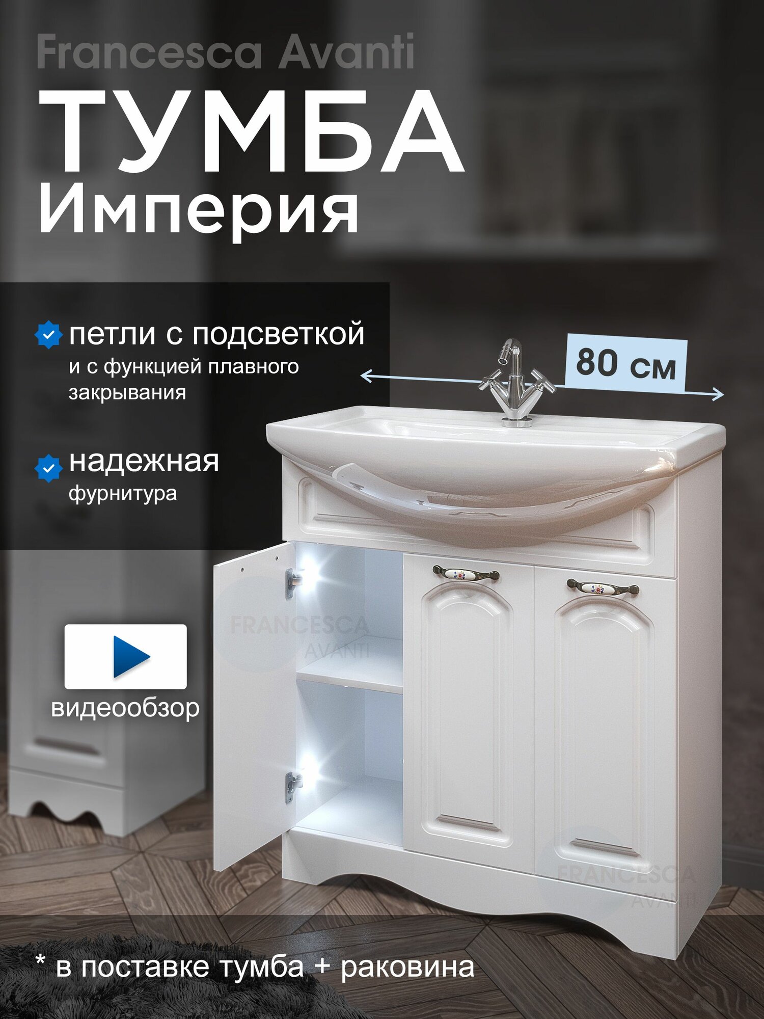 Тумба с раковиной для ванной Империя 80 с 3 дверцами белый, с подсветкой (ум. Балтика 80): сравнение цен, характеристики, фото, актуальное наличие и цены.