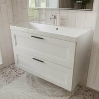Купить Тумба с раковиной для ванной MEBELVANN Arcadia 100 см подвесная белая 2 ящика с доставкой по всей России.
