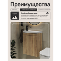 Тумба с раковиной для ванной подвесная 40 см бежевая/ МДФ фасад, GERDA PURE