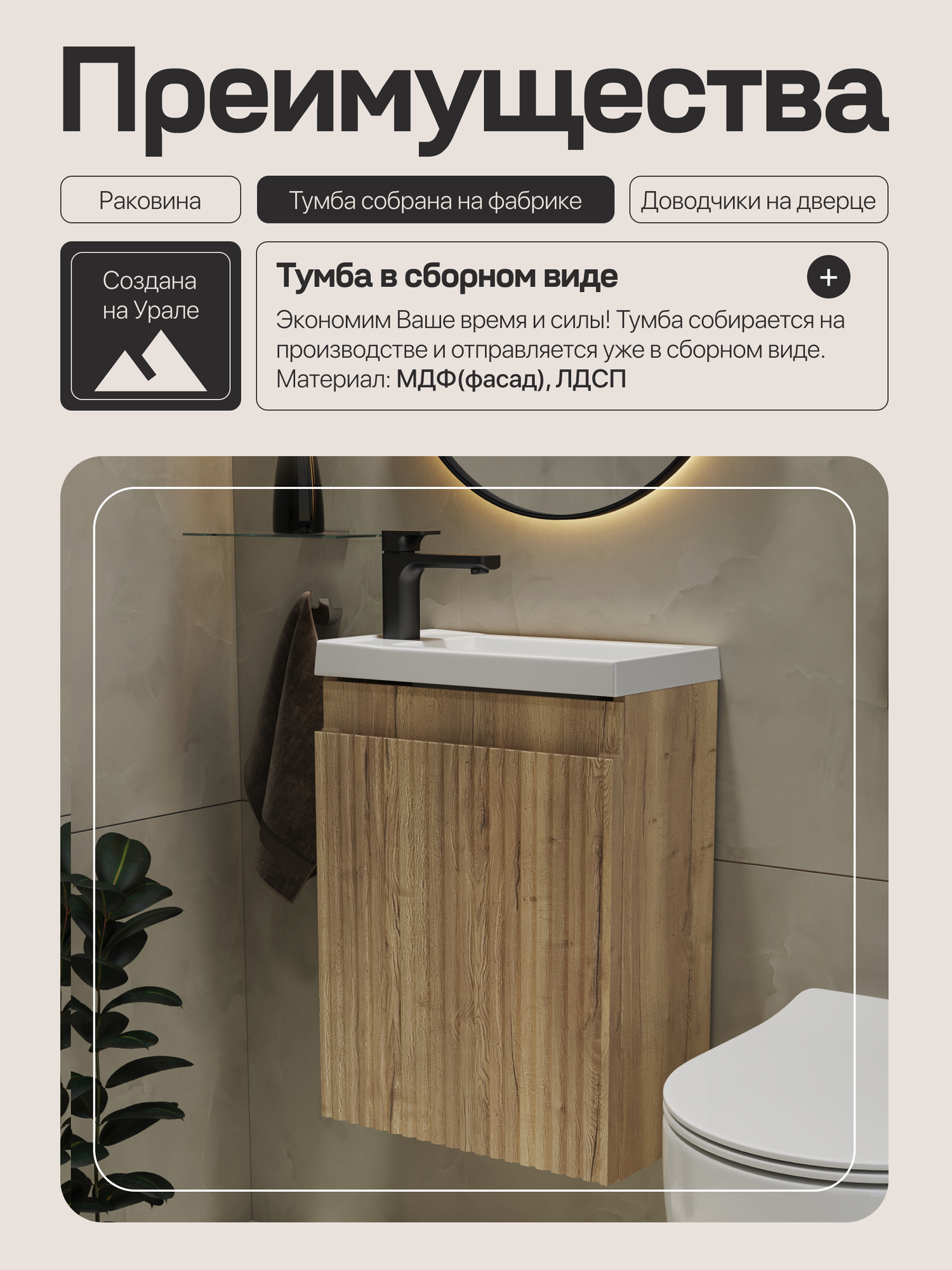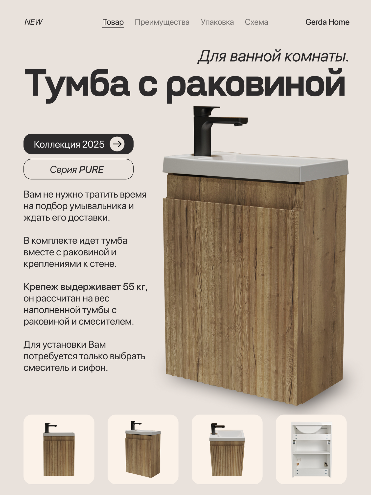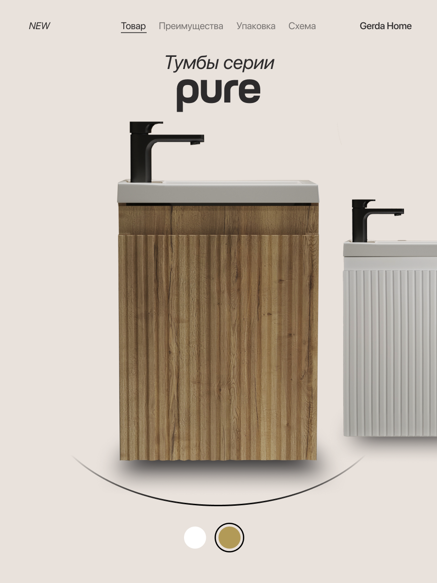 Тумба с раковиной для ванной подвесная 40 см бежевая/ МДФ фасад, GERDA PURE: сравнение цен, характеристики, фото, актуальное наличие и цены.