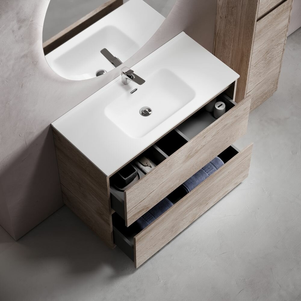 Купить Тумба с раковиной для ванной Sancos Libra Floor, 101 см, дуб галифакс натуральный с доставкой по всей России.