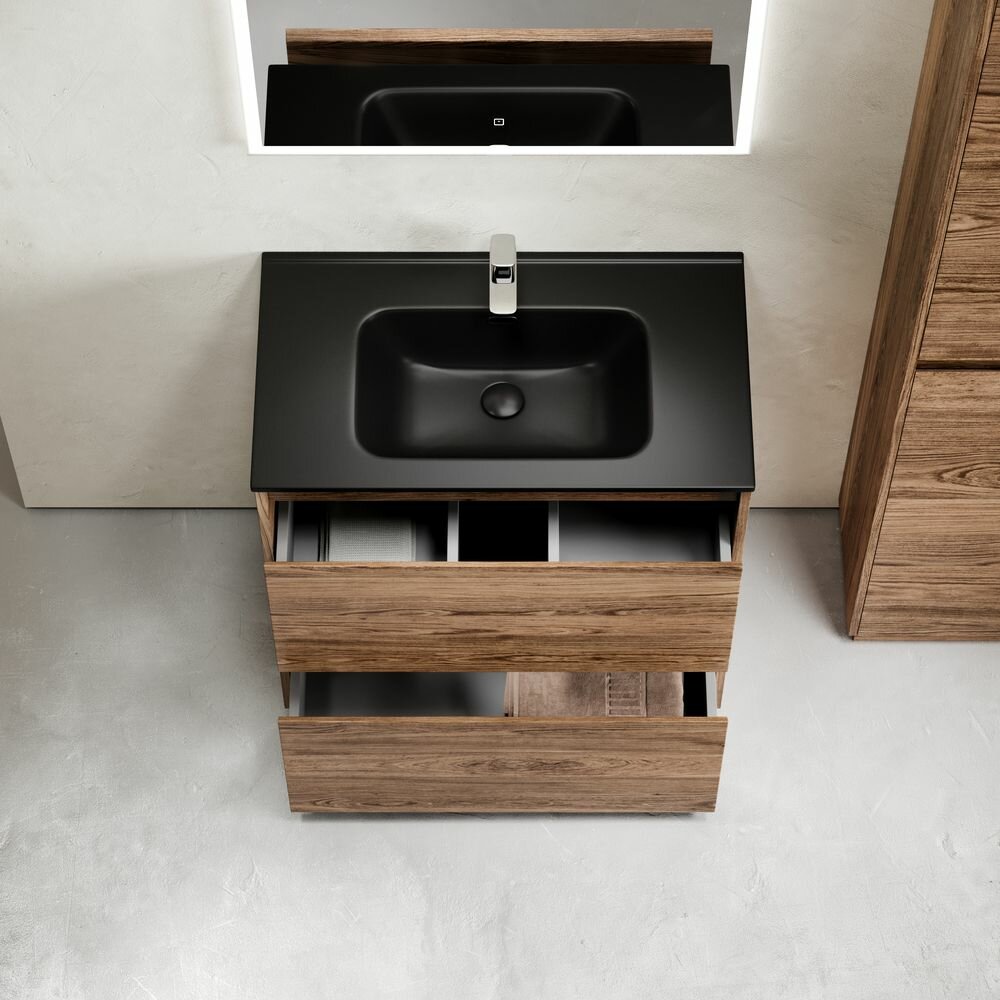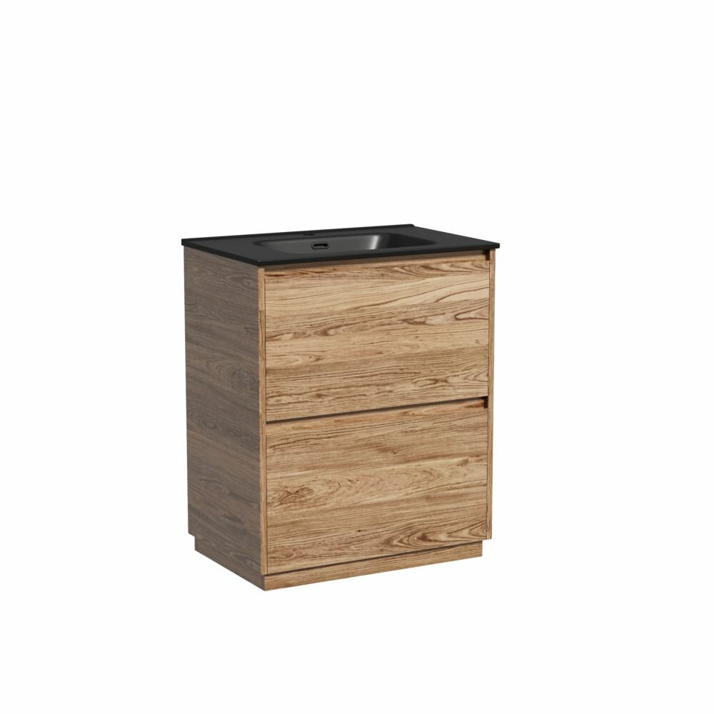 Купить Тумба с раковиной для ванной Sancos Libra Floor, 71 см, дуб чарльстон/черный матовый с доставкой по всей России.