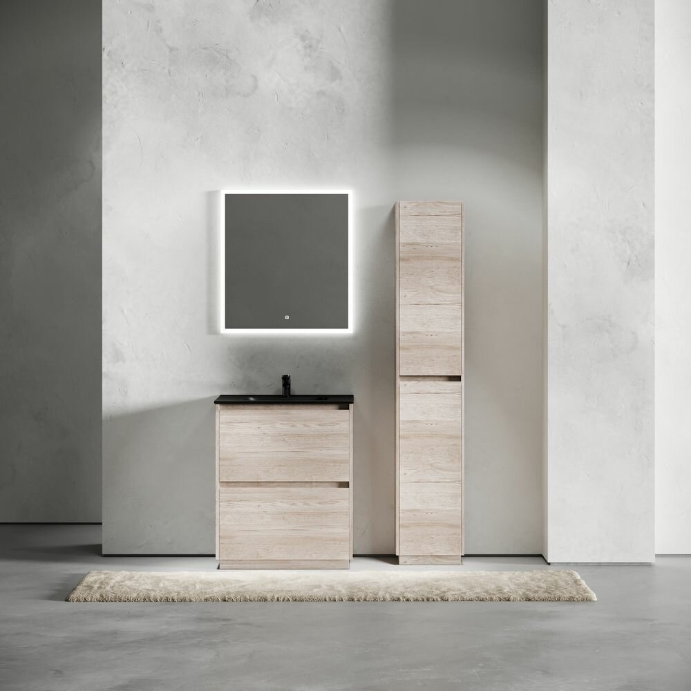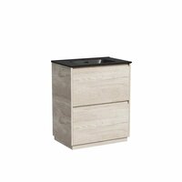 Купить Тумба с раковиной для ванной Sancos Libra Floor, 71 см, дуб галифакс натуральный/черный матовый с доставкой по всей России.