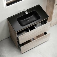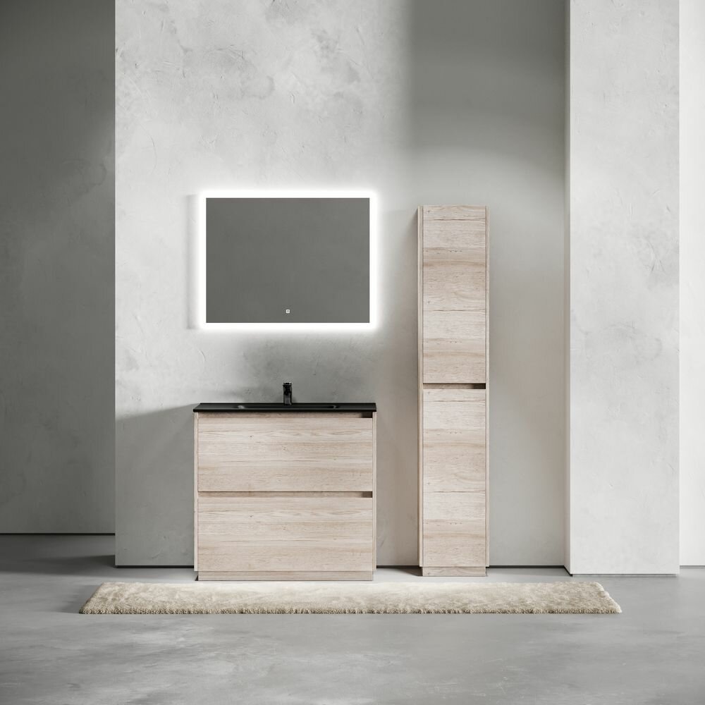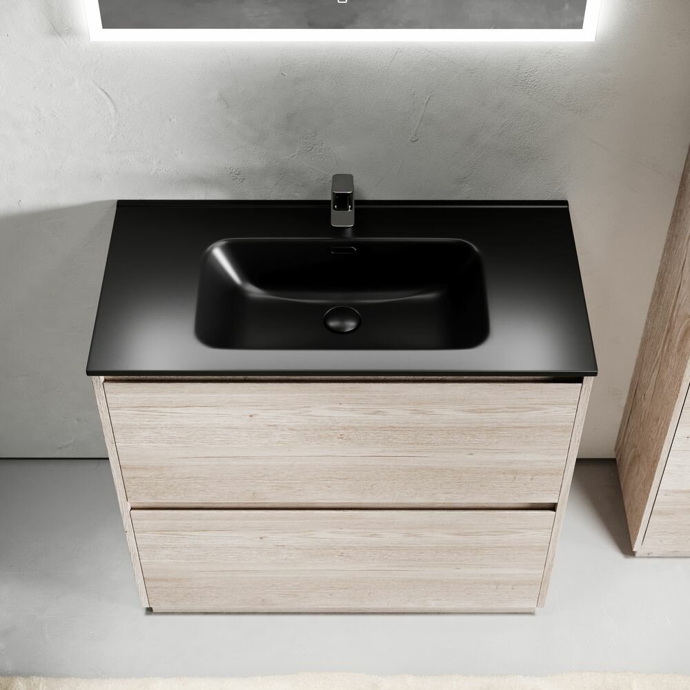 Купить Тумба с раковиной для ванной Sancos Libra Floor, 91 см, дуб галифакс натуральный/черный матовый с доставкой по всей России.