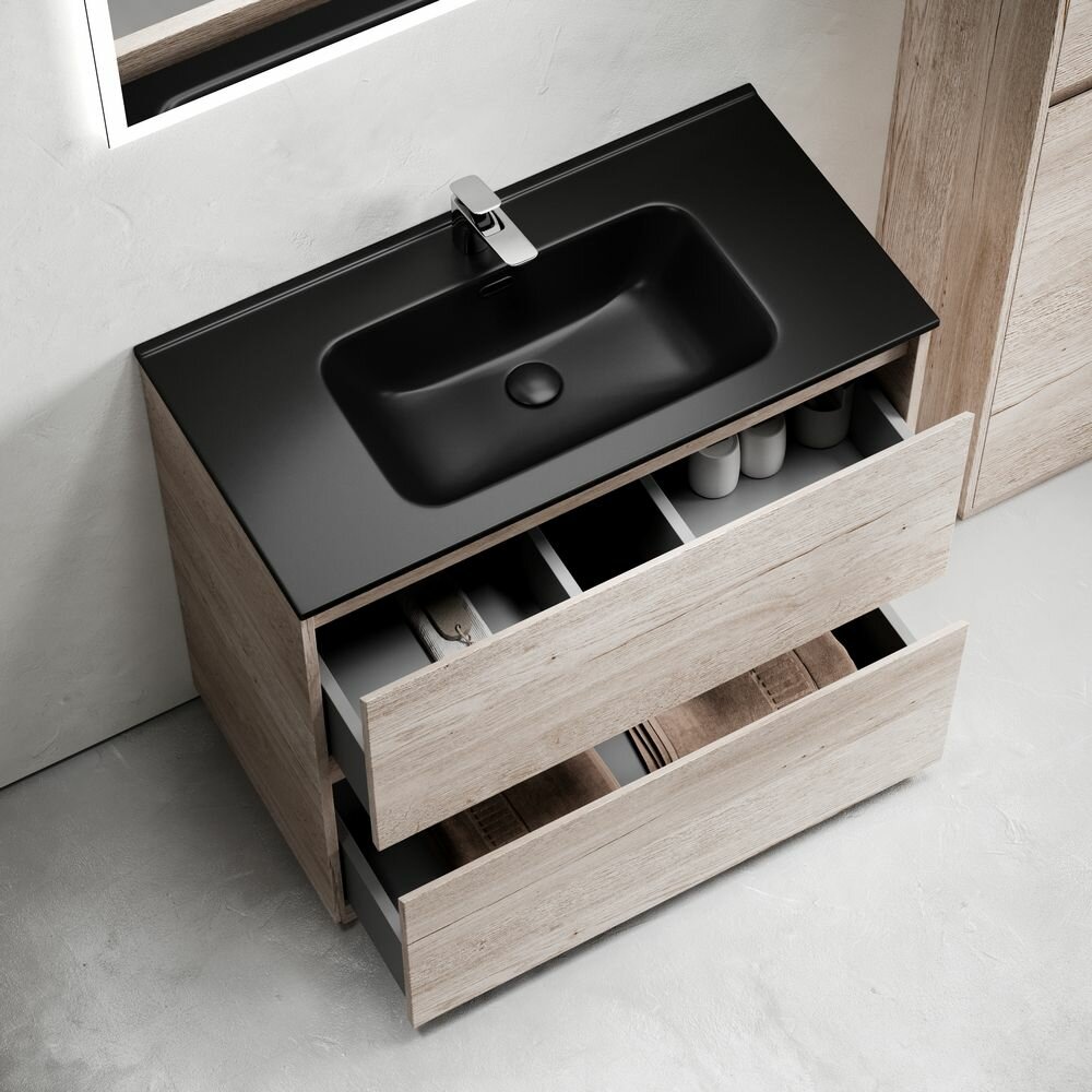 Тумба с раковиной для ванной Sancos Libra Floor, 91 см, дуб галифакс натуральный/черный матовый: сравнение цен, характеристики, фото, актуальное наличие и цены.