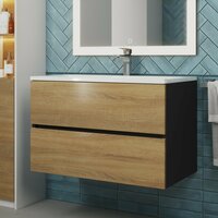 Купить Тумба с раковиной для ванной Uperwood Barsa 80 см, раковина белая, подвесная тумба черная/дуб сонома с доставкой по всей России.