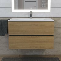 Купить Тумба с раковиной для ванной Uperwood Barsa-Next 80 см, подвесная, черная/дуб сонома с доставкой по всей России.
