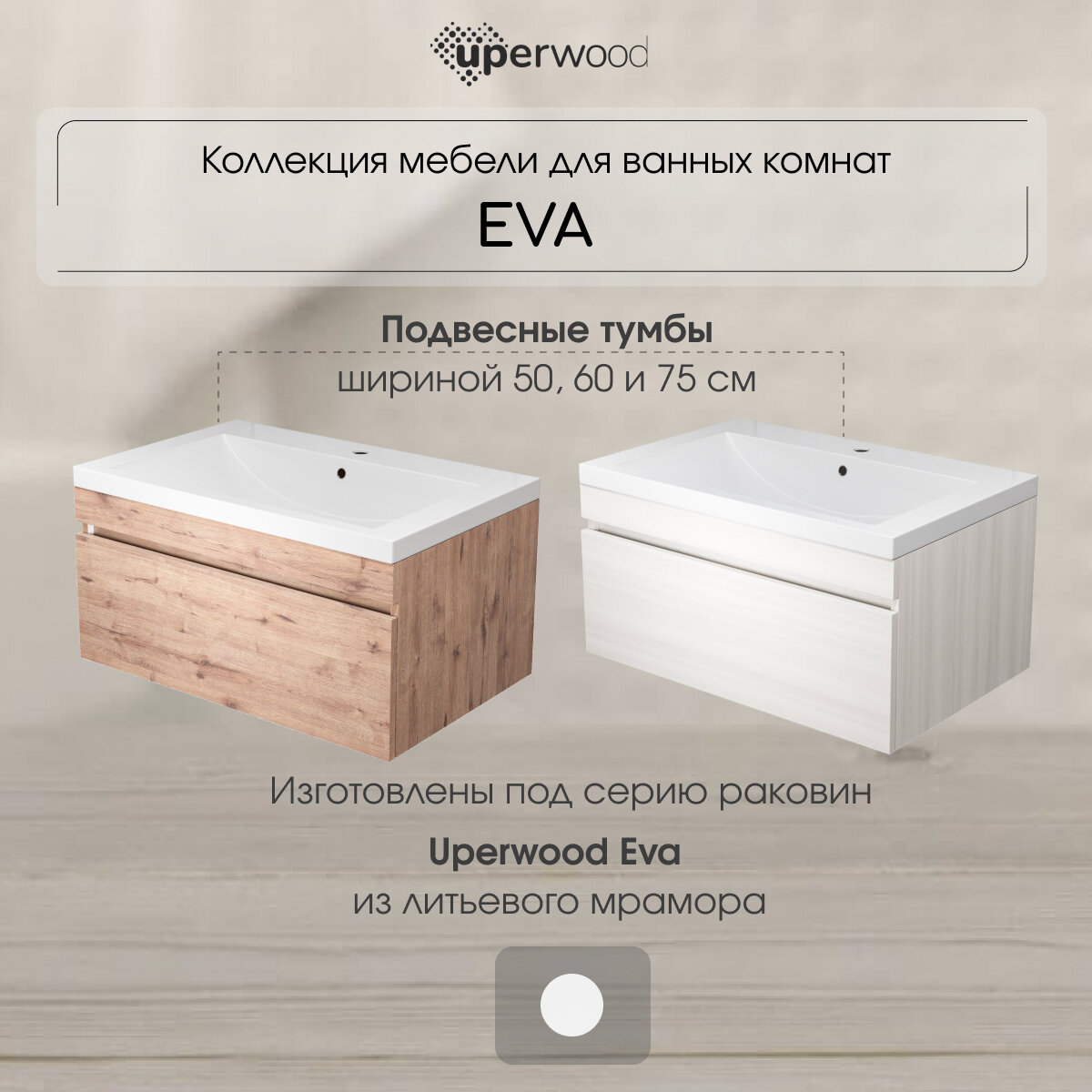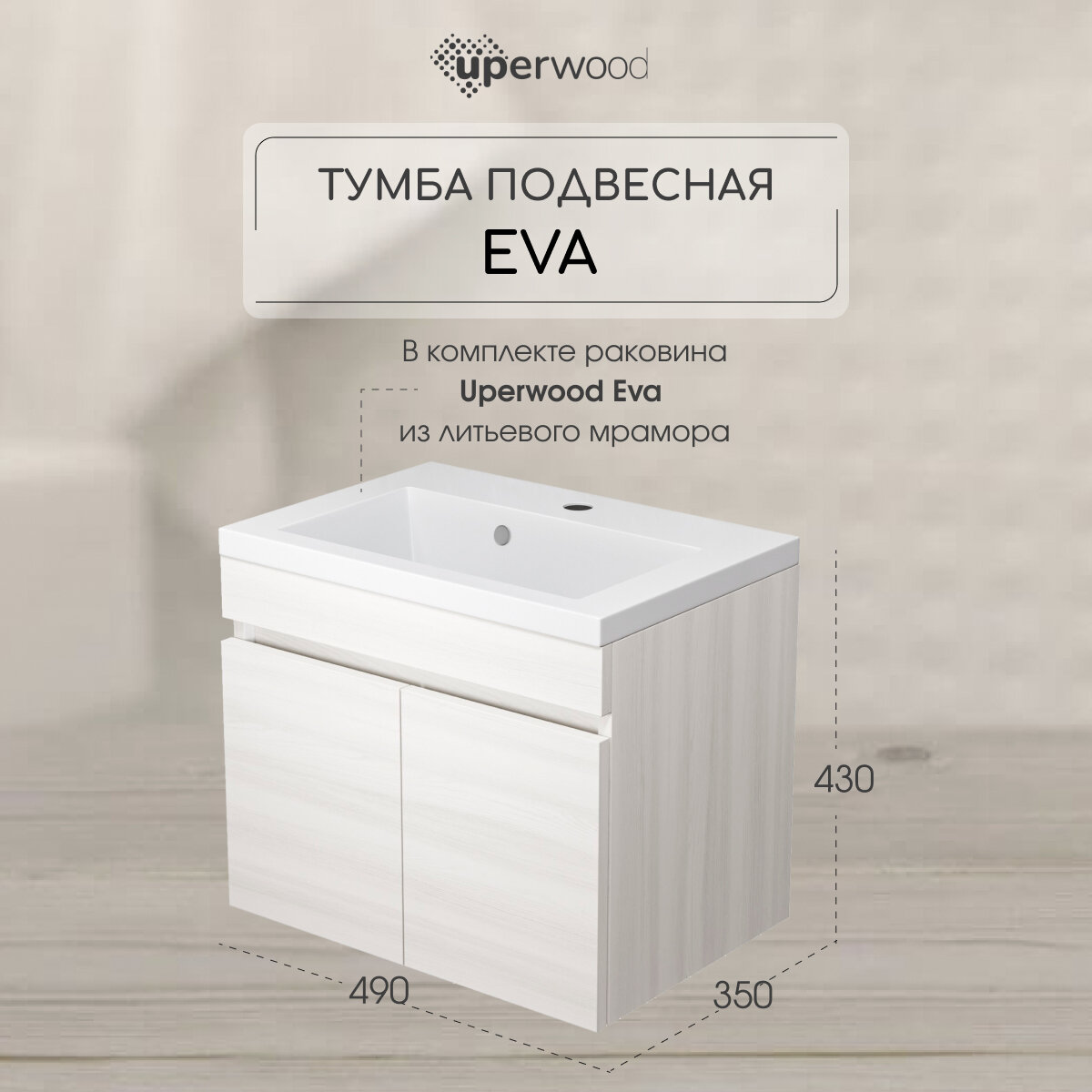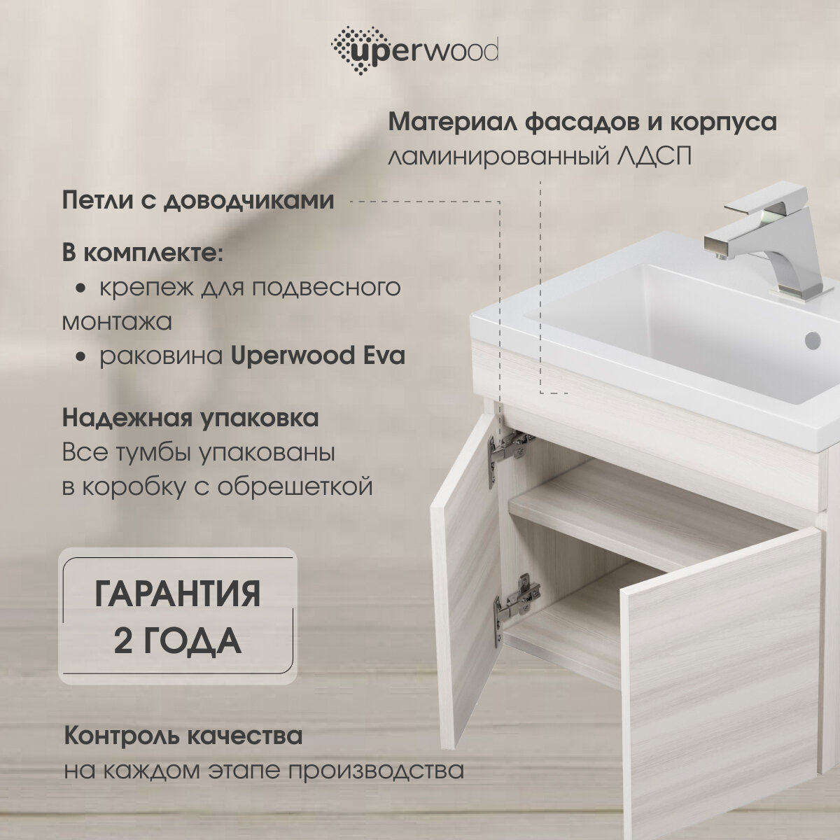Тумба с раковиной для ванной Uperwood Eva подвесная 49х35х43 см, Дуб Харбор Белый, с дверцами: сравнение цен, характеристики, фото, актуальное наличие и цены.