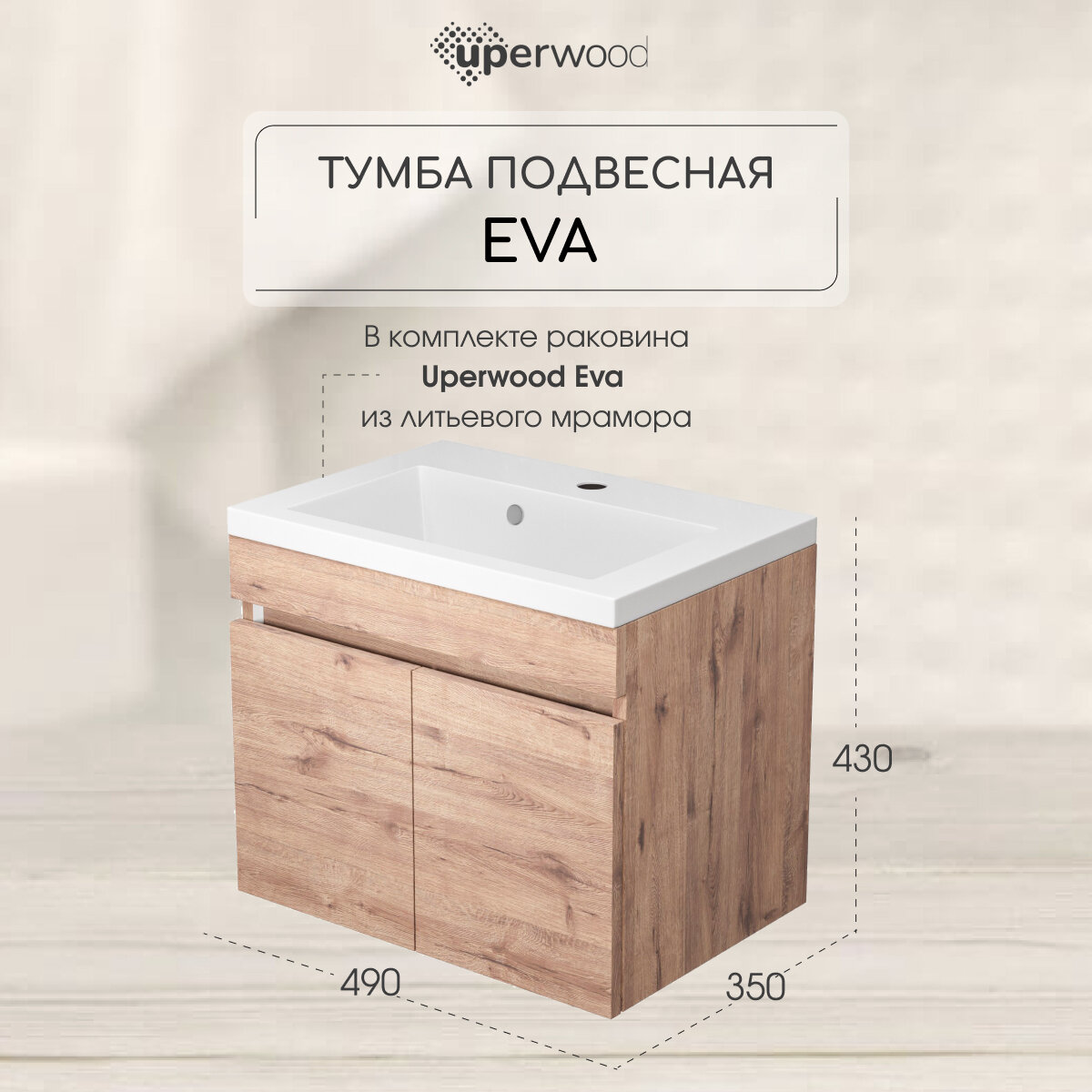 Тумба с раковиной для ванной Uperwood Eva подвесная 49х35х43 см, Крафт Табачный, с дверцами: сравнение цен, характеристики, фото, актуальное наличие и цены.