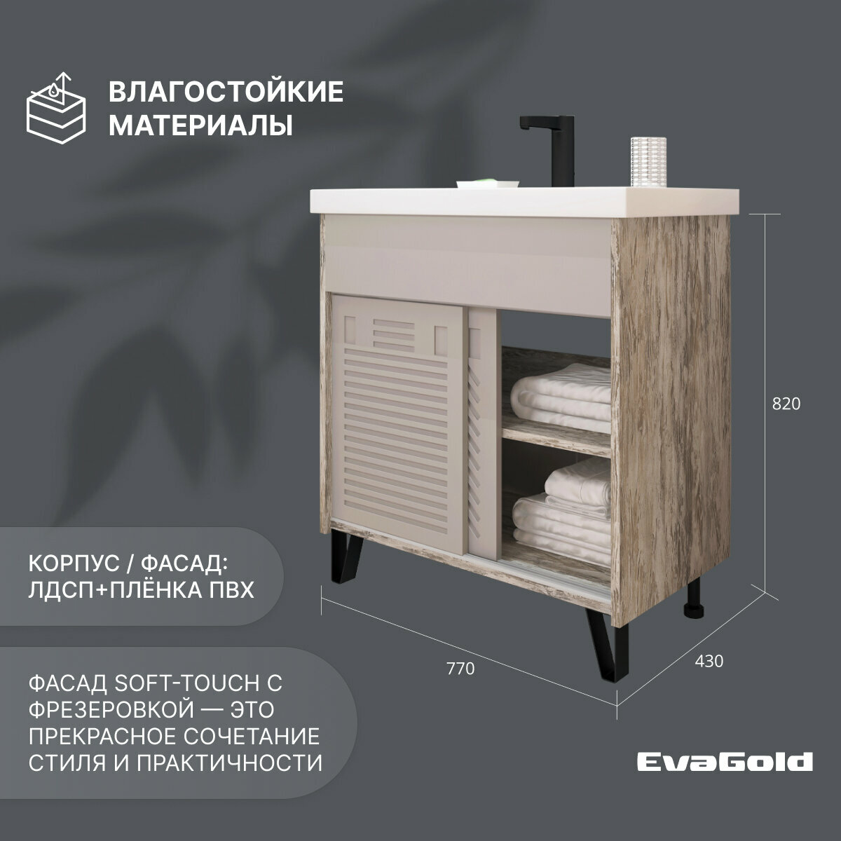 Купить Тумба с раковиной EvaGold 80 см, набор ND72.5 серый для ванной с доставкой по всей России. Тумба с раковиной EvaGold 80 см, набор ND72.5 серый для ванной: сравнение цен, характеристики, фото, актуальное наличие и цены.