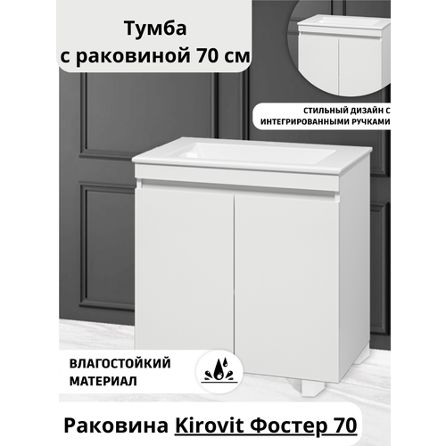Раковина Kirovit Фостер 70 см, входящая в комплект, выполнена из керамики и имеет белый цвет. Это гарантирует долговечность и надежность использования.