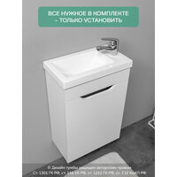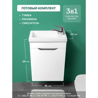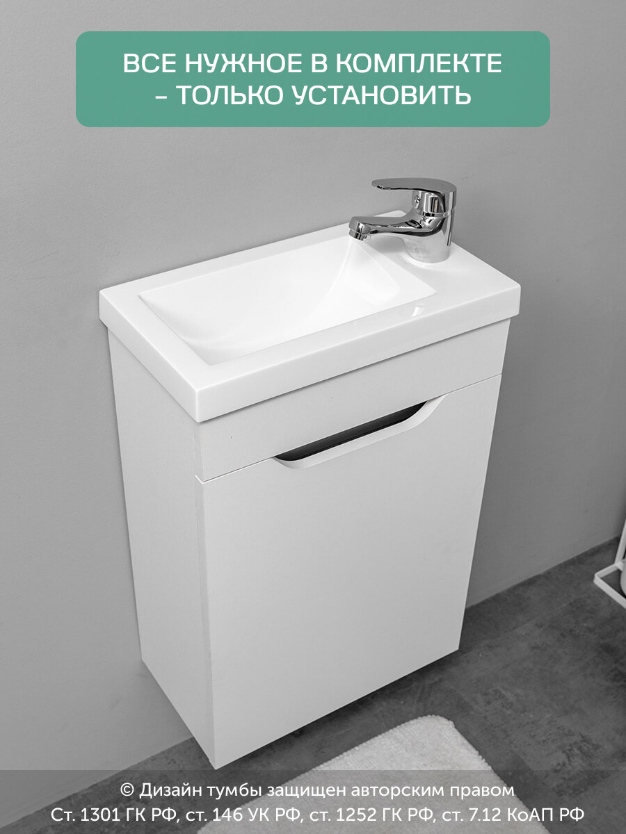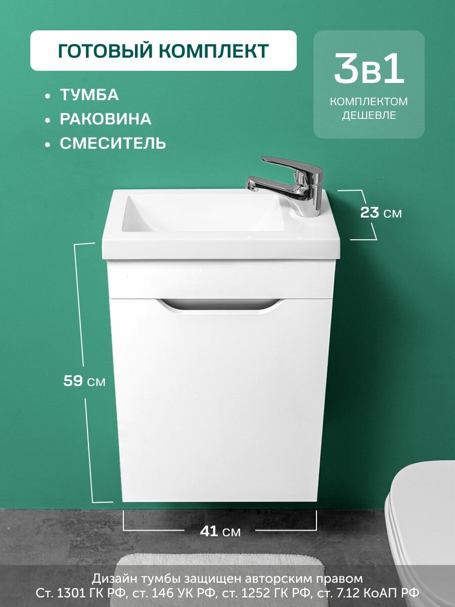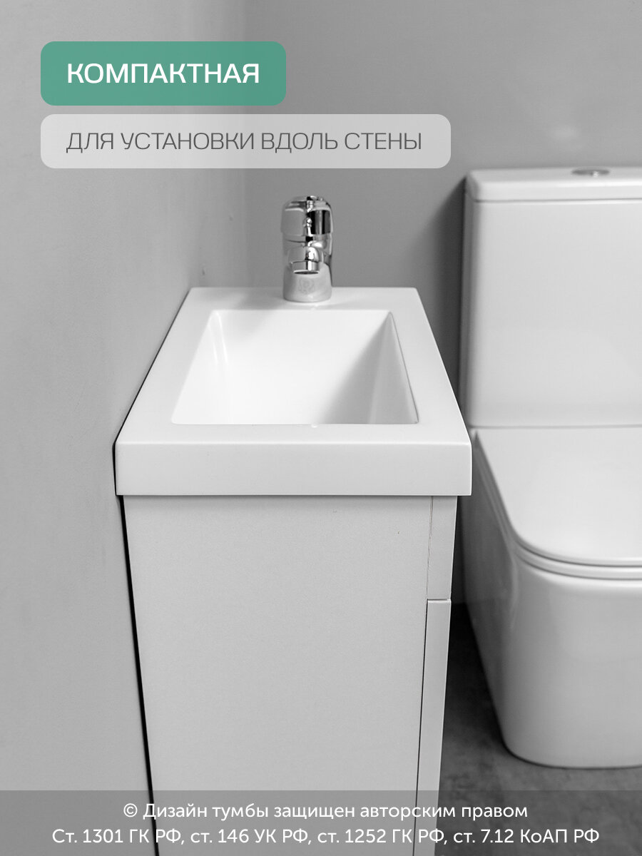 Тумба с раковиной и смесителем в ванную узкая маленькая цвет белый - это идеальное решение для тех, кто хочет создать стильный интерьер в своей ванной комнате. Эта тумба имеет прямоугольную форму раковины размером 40x3x22 см, которая отлично впишется в любой дизайн помещения. Раковина установлена на высоких ножках, что делает ее более устойчивой и удобной для использования.