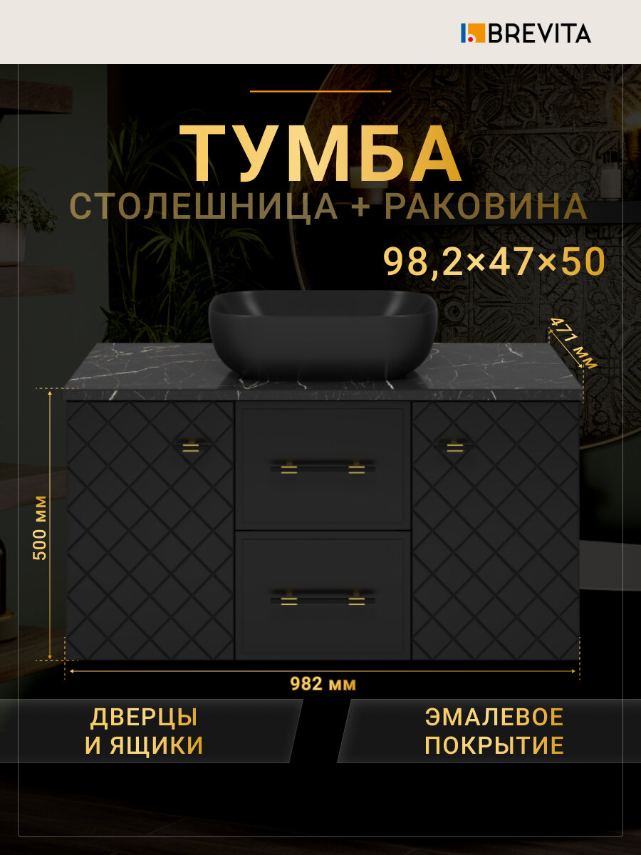 Тумба с раковиной и столешницей Brevita SHANEL -100 подвесная с 2 ящиками и 2 дверями черная матовая эмаль: сравнение цен, характеристики, фото, актуальное наличие и цены.