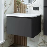 Тумба с раковиной Itana Roberto 70 подвесная, 69, 6 см, черная, с ящиками, прямоугольная, в современном стиле из МДФ из камня серая