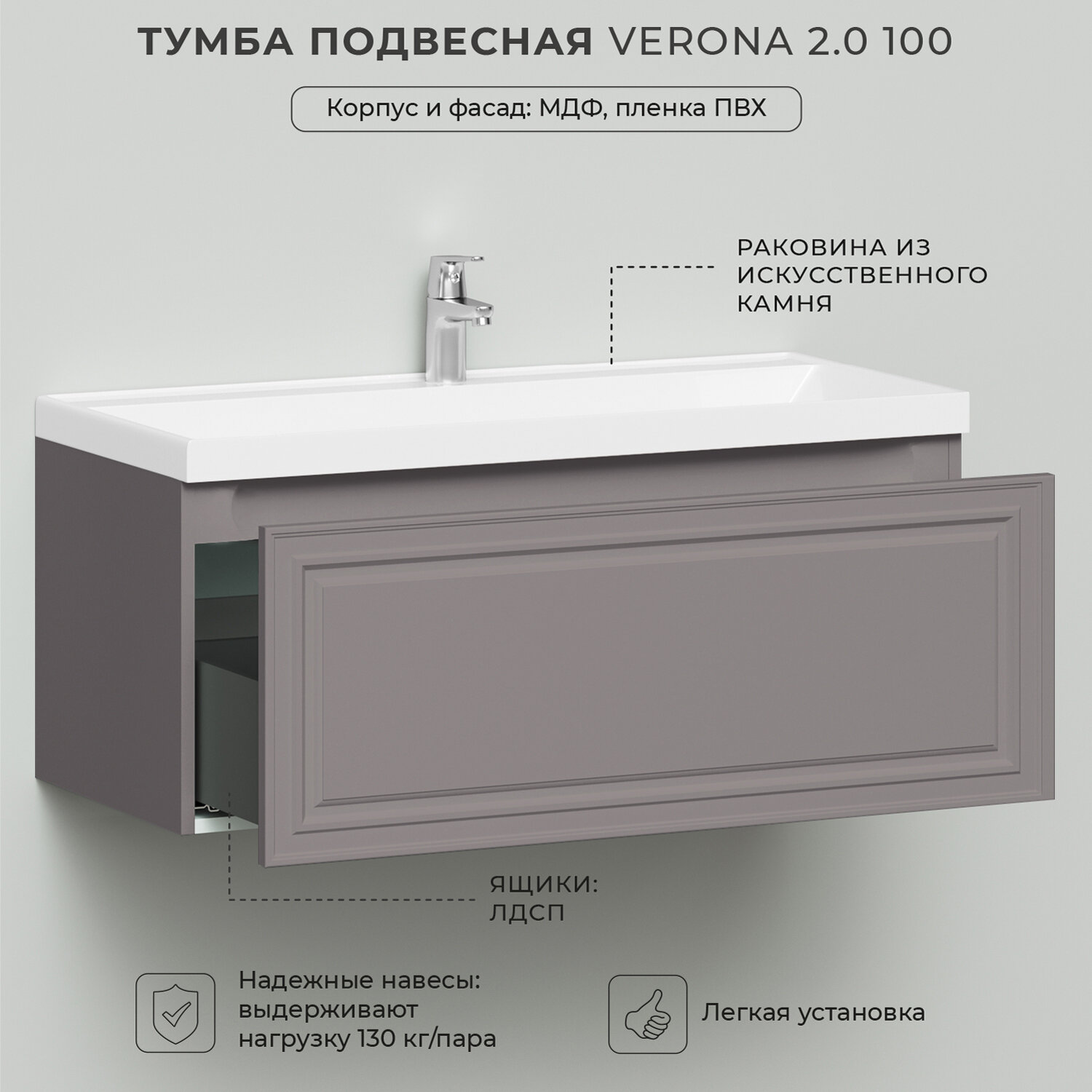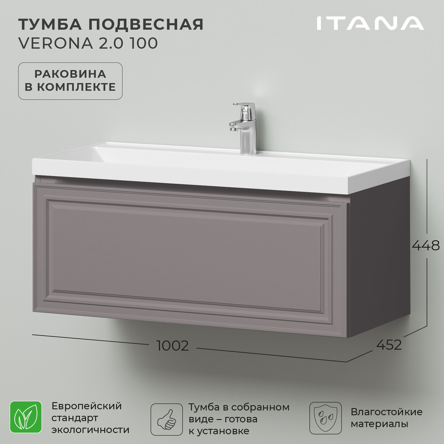 Купить Тумба с раковиной Итана Verona 2.0 100 1002х452х448 Амаретти с доставкой по всей России.