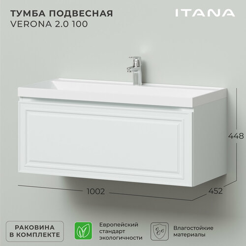 Купить Тумба с раковиной Итана Verona 2.0 100 1002х452х448 Эмаль Белый матовый с доставкой по всей России.