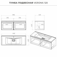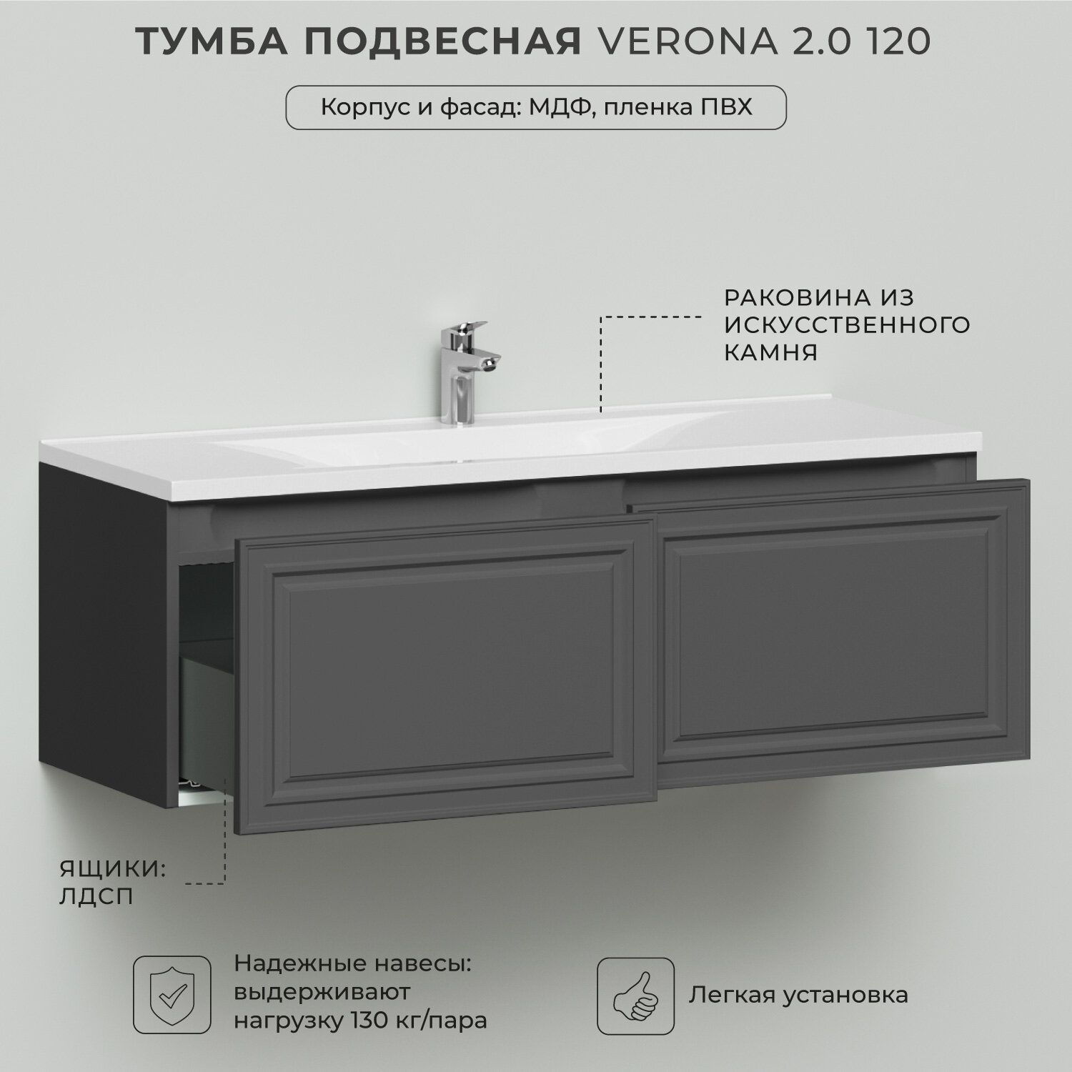Купить Тумба с раковиной Итана Verona 2.0 120 1196×455х433 Графит с доставкой по всей России.
