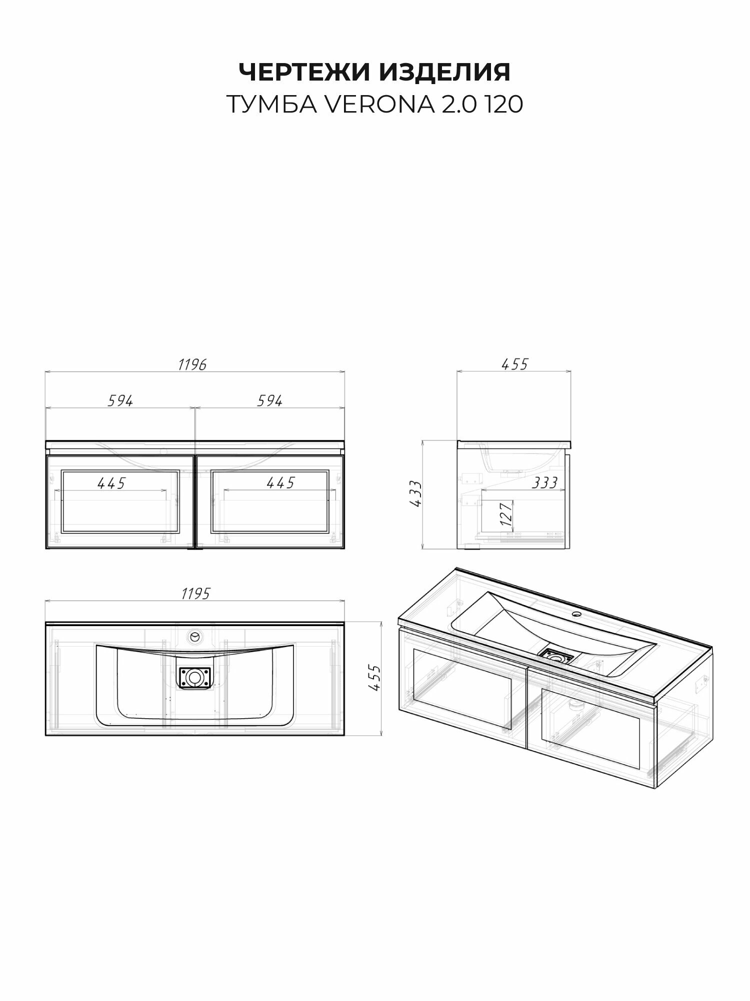 Купить Тумба с раковиной Итана Verona 2.0 120 1196×455х433 Керамик с доставкой по всей России.