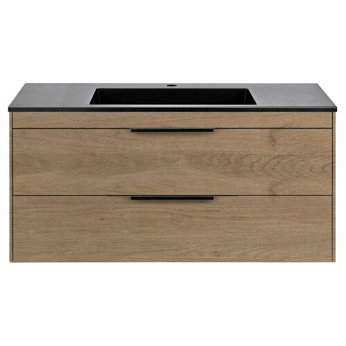 Тумба подвесная Vincea Chiara 2D 100 N.Oak (натуральный дуб) в комплекте с раковиной из искусственного камня Vincea VCB-13100B (чёрная).