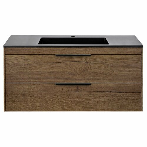 Тумба подвесная Vincea Chiara 2D 100 T.Oak (дуб табак) в комплекте с раковиной из искусственного камня Vincea VCB-13100B (чёрная).