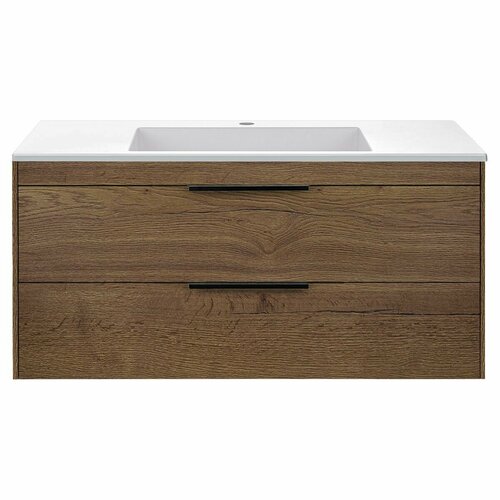 Тумба подвесная Vincea Chiara 2D 100 T.Oak (дуб табак) в комплекте с раковиной из искусственного камня Vincea VCB-13100W (белая).