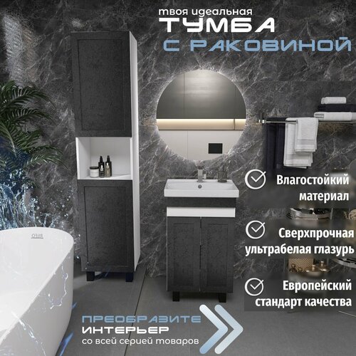 Тумба для ванной АКВАМИКС ПРОВАНС напольная, с раковиной Cersanit, асфальт матовый, 50х43х80 см: сравнение цен, характеристики, фото, актуальное наличие и цены.