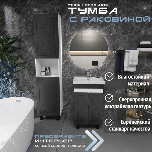 Тумба для ванной аквамикс прованс напольная, с раковиной Cersanit, асфальт матовый, 60х41х80 см: сравнение цен, характеристики, фото, актуальное наличие и цены.
