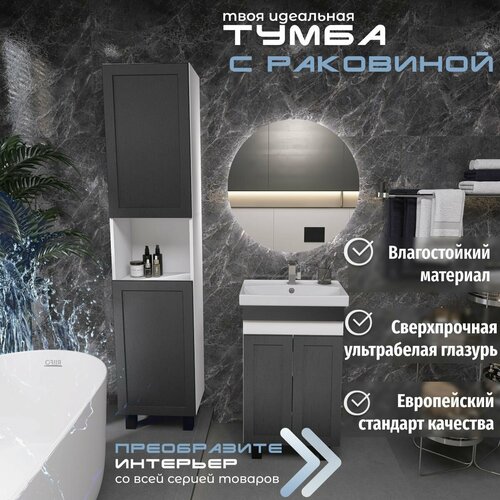 Тумба для ванной аквамикс прованс напольная, с раковиной Cersanit, графит матовый, 60х41х80 см: сравнение цен, характеристики, фото, актуальное наличие и цены.