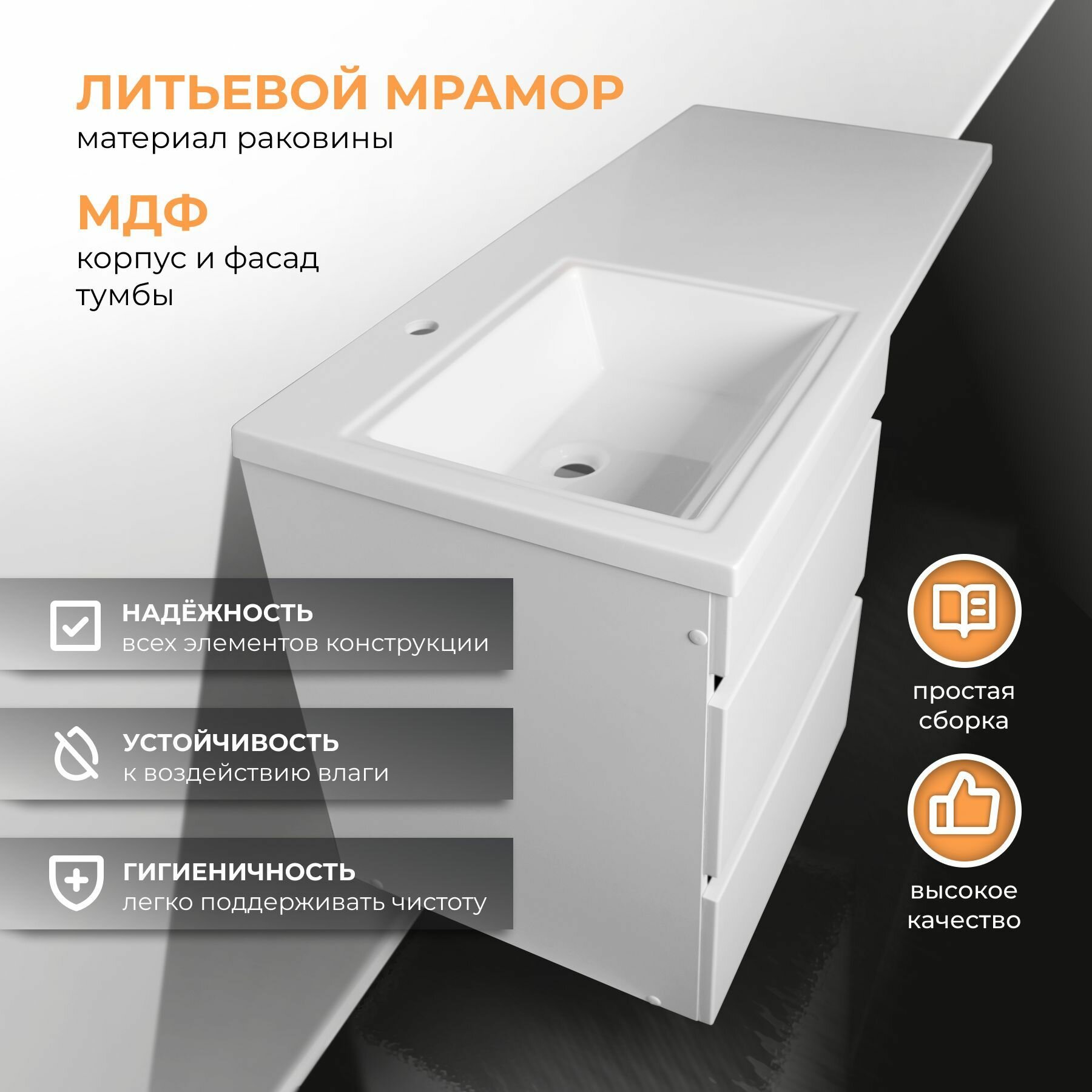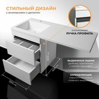 | Дополнительная информация | Тумба доставляется в разобранном виде, габариты раковины 109.8х48.3х14.5 |