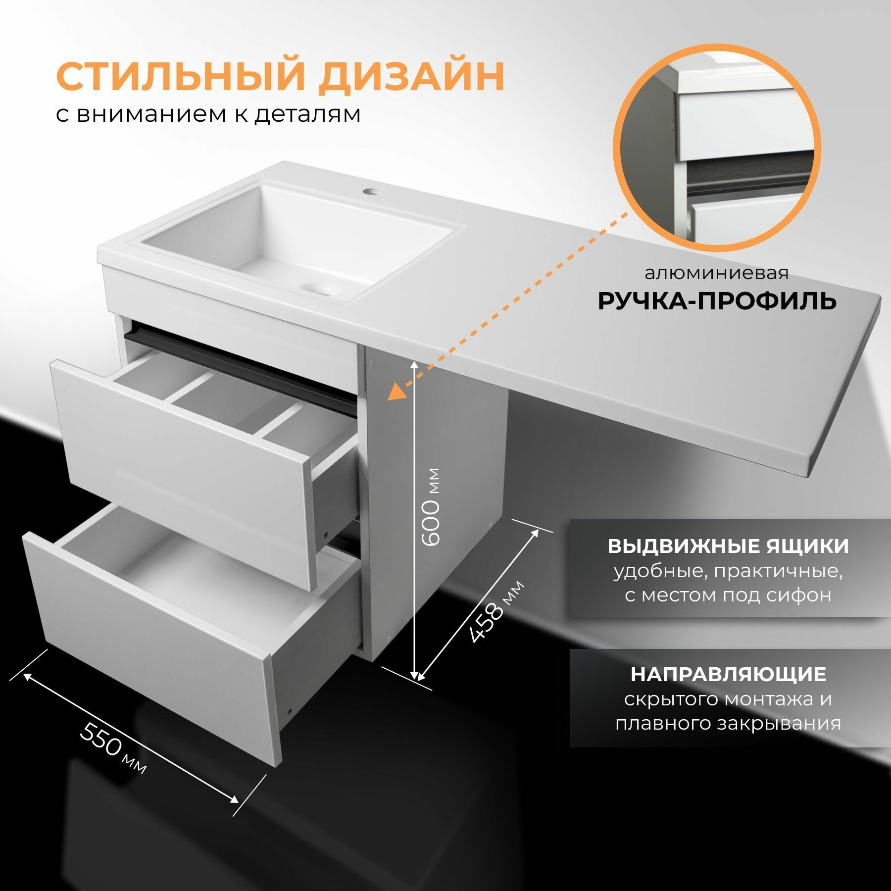 Тумба с раковиной, комплект Раковина марсал 120 левая+Тумба навесная с черной профиль-ручкой: сравнение цен, характеристики, фото, актуальное наличие и цены.