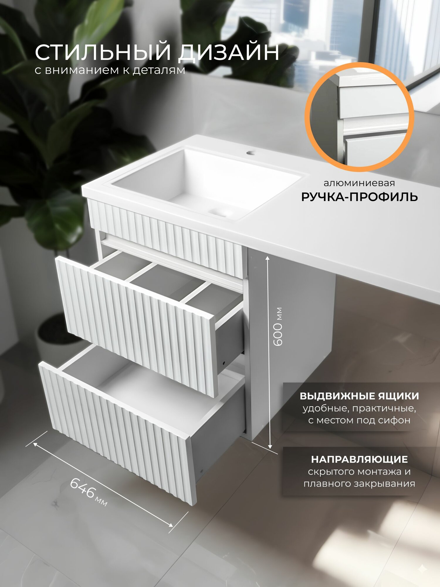 Тумба с раковиной, комплект Раковина марсал 130 левая+Тумба навесная рифленая с белой профиль-ручкой: сравнение цен, характеристики, фото, актуальное наличие и цены.