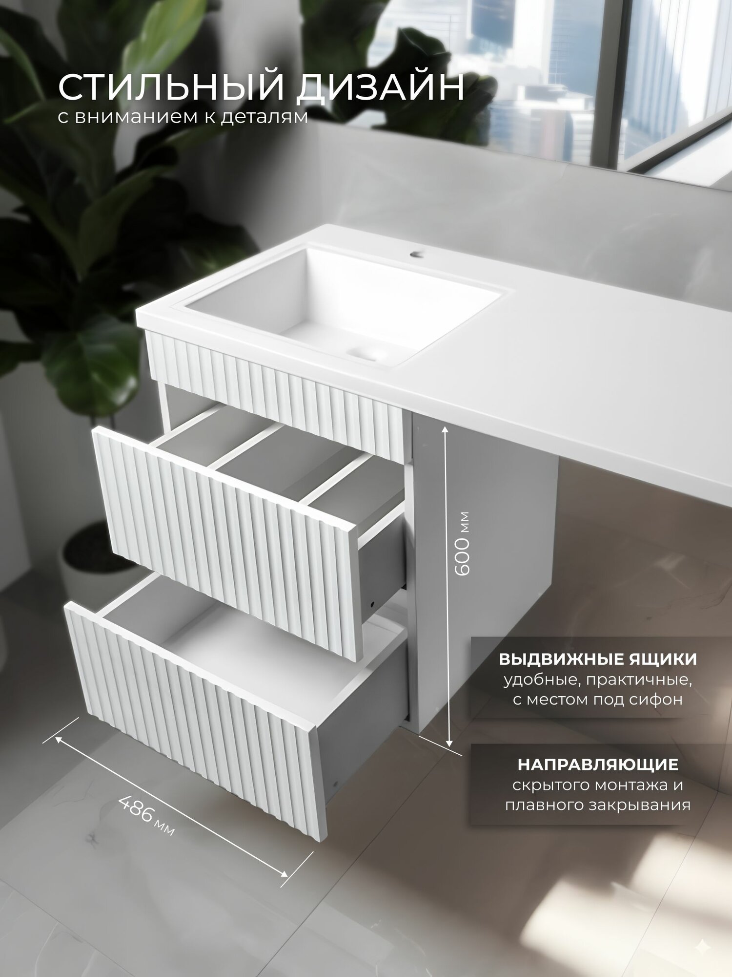 Купить Тумба с раковиной Марсал 110 левая, комплект тумба навесная с рифленым фасадом+раковина с доставкой по всей России.