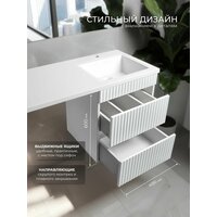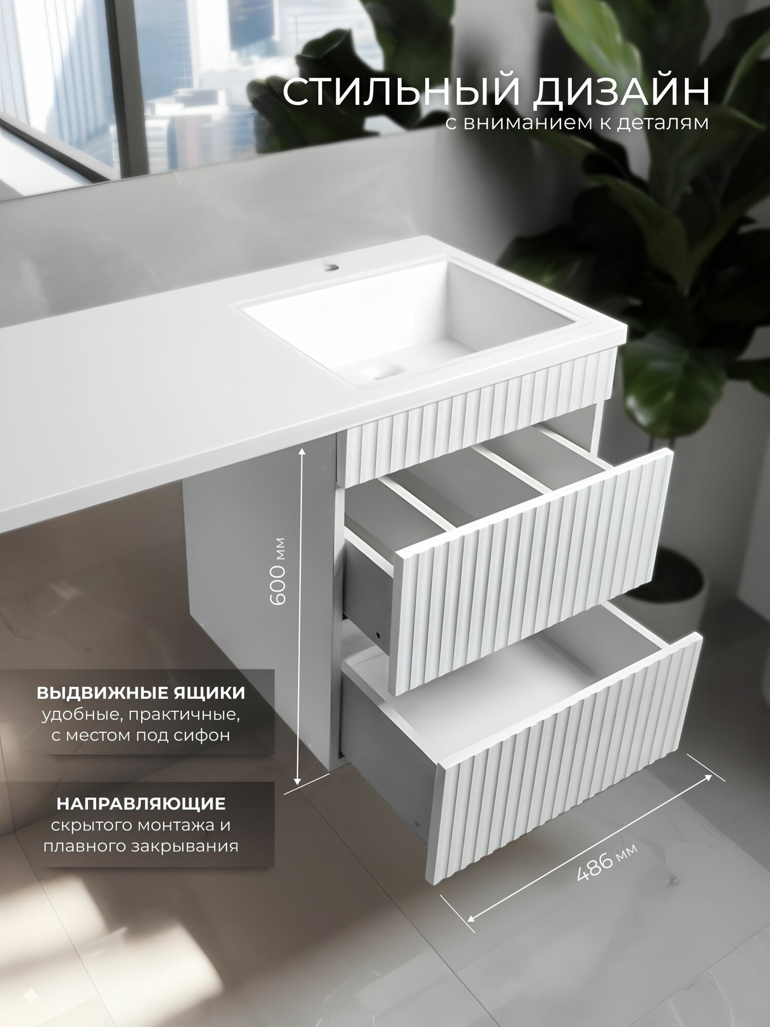 Купить Тумба с раковиной Марсал 110 правая, комплект тумба навесная с рифленым фасадом+раковина с доставкой по всей России.