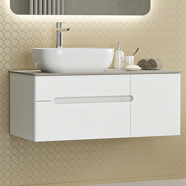 Тип: тумба с раковиной Ширина, см: 100 Глубина, см: 50 Высота, см: 40 Область применения: бытовая Стилистика дизайна: современный стиль Форма мебели: прямоугольная, округлая Цвет: белый Страна: Россия Монтаж: подвесной Оснащение: петли с доводчиком, направляющие с доводчиком, скрытого монтажа, подвесы 2 шт, шуруп с Г-образным крючком 2 шт. Ориентация: левая Материал корпуса: ЛДСП Покрытие корпуса: эмаль, матовое Материал фасада: МДФ Покрытие фасада: эмаль, матовое Система хранения: с дверцами, с ящиками Материал раковины: фаянс Форма раковины: прямоугольная Цвет раковины: белый Материал столешницы: керамогранит Серия: Роял