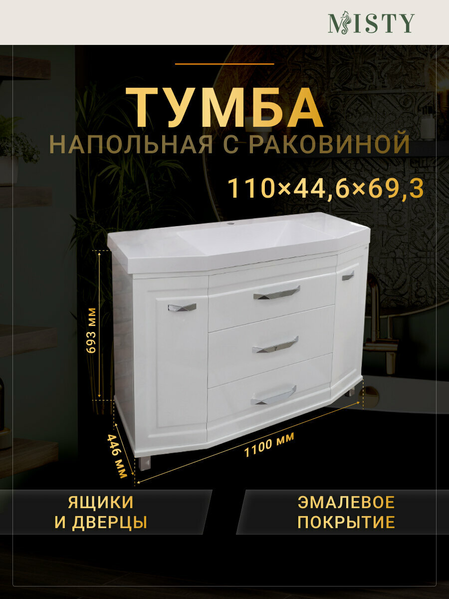 Тумба с раковиной Misty Терра 110 с 3 ящиками, белая, напольная: сравнение цен, характеристики, фото, актуальное наличие и цены.