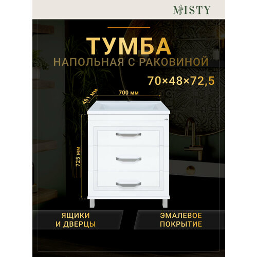 Купить Тумба с раковиной Терра 70 3 ящика белая с доставкой по всей России.