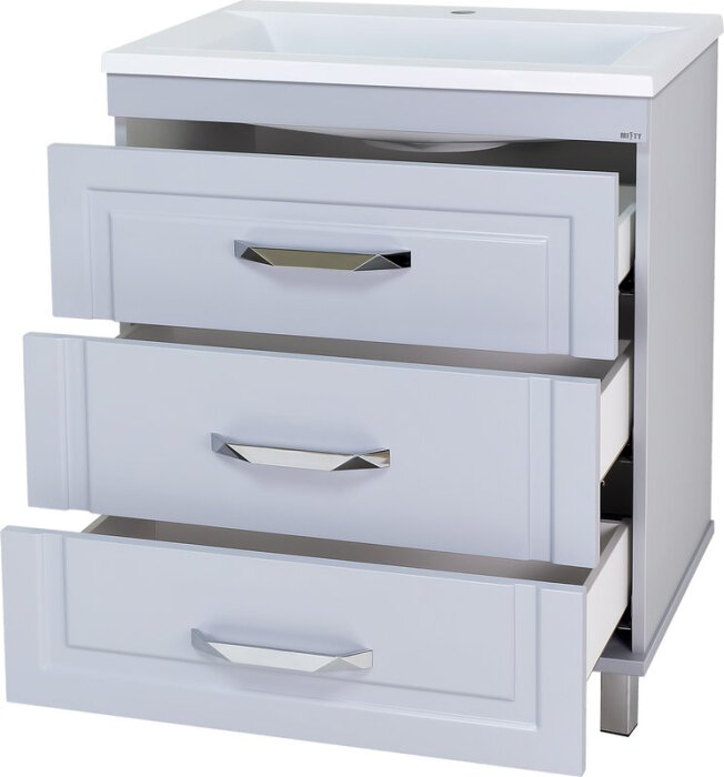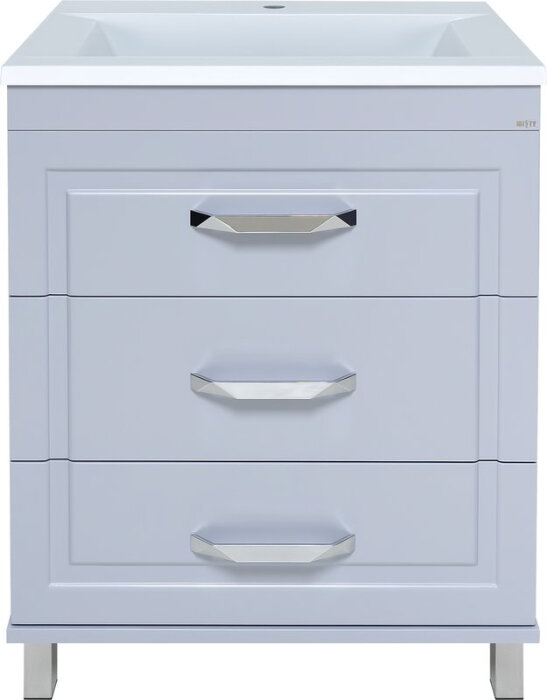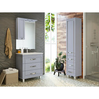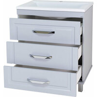 Напольная тумба с раковиной Misty Терра Терра 70 в Классический стиле - идеальное дополнение вашего интерьерного решения. Этот стильный и функциональный комплект тумбы с раковиной 70 см идеально разместится в любой стандартной ванной комнате. Материал корпуса изготовлен из ЛДСП, а фасад выполнены из влагостойкого МДФ. Для дополнительного удобства этот комплект оснащен системой хранения с выдвижными ящиками. Тумба выполнена в элегантном цвете: серый, который придаст изысканность вашей ванной комнате. Благодаря своему дизайну Тумба с раковиной Misty Терра 70 с 3 ящиками серая станет изюминкой вашей ванной комнаты.