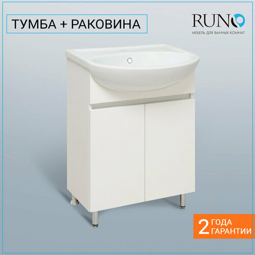 Тумба с раковиной в ванную Runo лада - модное и оригинальное решение для бюджетного оснащения ванной комнаты. Тумба под раковину лада (напольная) выполнена в двух цветах - классическом белом и в стильном цвете - графит/лиственница. Тумба в ванную имеет две распашные дверцы и одну внутреннюю полку. В комплекте идут петли со встроенным доводчиком, 2 хромированные и 2 пластиковые ножки. Тумба для ванной комплектуется керамической раковиной "Уют 60" (615*470 мм). Раковина глубиной 18 см. Мебель для ванной RUNO - красота и практичность в мелочах!