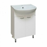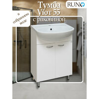 Тумба с раковиной для ванной комнаты RUNO УЮТ - отличное решение для бюджетного оснащения ванной комнаты. Тумба под раковину УЮТ (напольная) выполнена в классическом дизайне. Тумба в ванную комнату имеет две распашные дверцы и одну внутреннюю полку. Цвет фасада универсальный - белый, идеально впишется в любой интерьер ванной комнаты. В комплекте идут петли со встроенным доводчиком, 2 ручки, 2 хромированные и 2 пластиковые ножки. Тумба для ванной комплектуется керамической раковиной "Уют 55" (560x195x445 мм). Мебель для ванной Руно - красота и практичность в мелочах! Цвет товара на мониторе может отличаться от реальных цветов, это зависит от настроек цветового профиля и разрешения Вашего монитора или мобильного устройства.