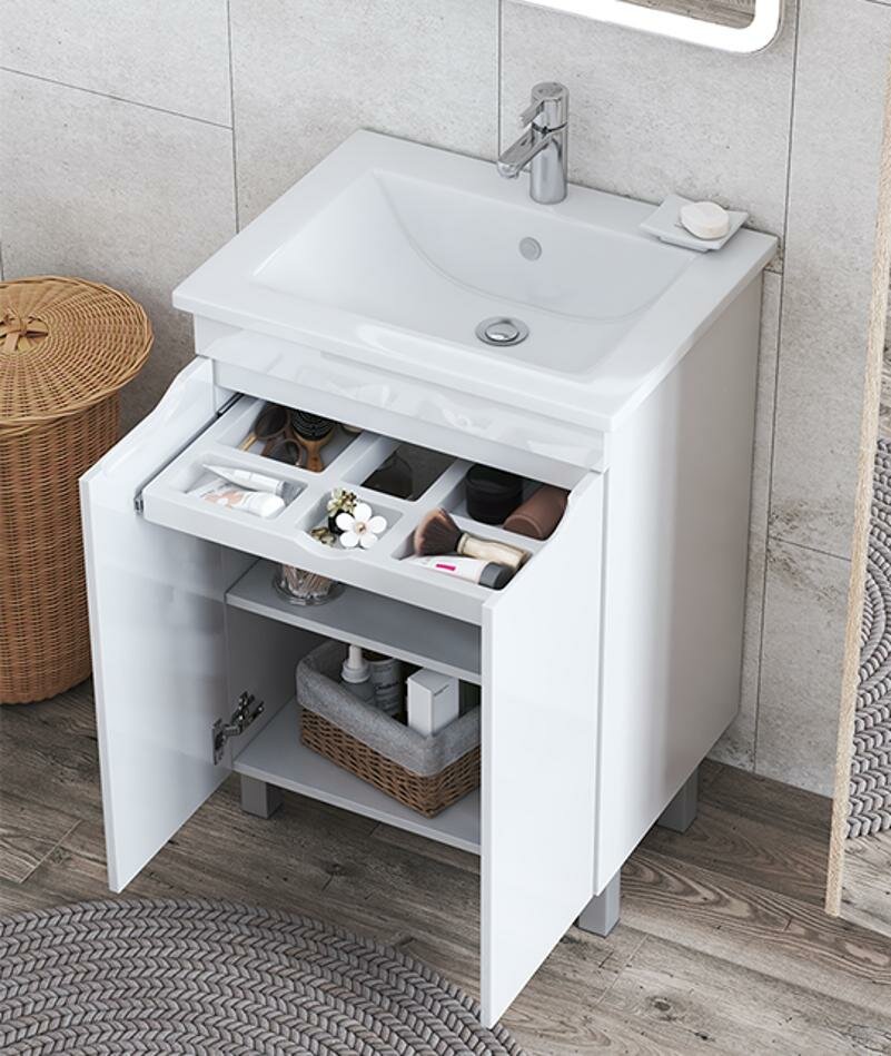 Тумба под раковину EvaGold 60 см, модель ND20.5 белый глянец для ванной