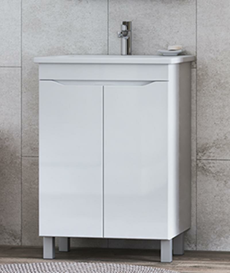 Тумба с раковиной EvaGold 60 см, набор LP20.14 белый глянец для ванной