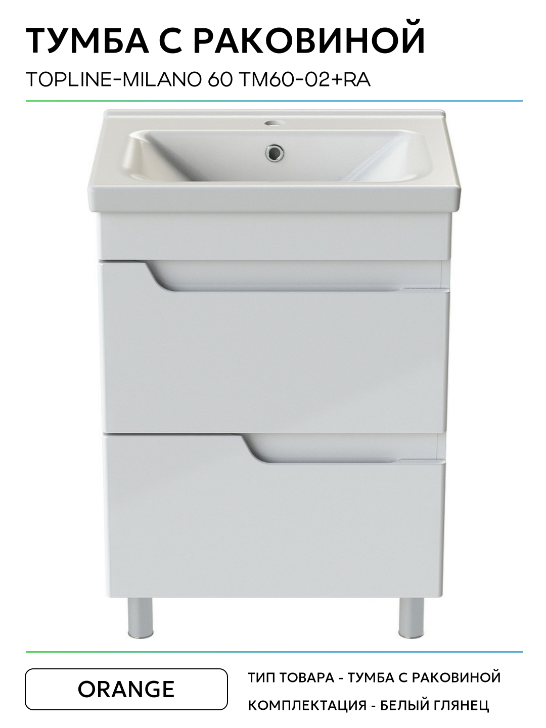 Тумба с раковиной Orange Topline-Milano 60 TM60-02+RA Белый глянец МДФ / ЛДСП белый с ящиками Россия: сравнение цен, характеристики, фото, актуальное наличие и цены.