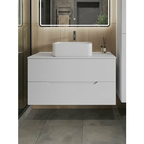 Тумба подвесная с накладной раковиной Orange Line отличается современным дизайном. Изготовлена из МДФ высокой плотности. Мебель покрыта пленкой ПВХ с технологией Soft Touch — ламинация класса премиум, с повышенными тактильными свойствами. Пленка обеспечивает дополнительную защиту мебели от влаги и перепадов температуры. На ящики установлены комплекты скрытых направляющих Hettich, обеспечивающие полное выдвижение и имеющие встроенную систему плавного и бесшумного закрывания. Исполнение - матовое. Материал раковины - фарфор. Отверстия в столешнице под раковину и смеситель монтируются самостоятельно.