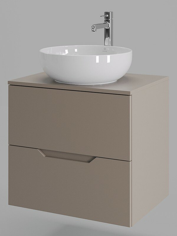 Тумба подвесная с накладной раковиной Orange Line отличается современным дизайном. Изготовлена из МДФ высокой плотности. Мебель покрыта пленкой ПВХ с технологией Soft Touch — ламинация класса премиум, с повышенными тактильными свойствами. Пленка обеспечивает дополнительную защиту мебели от влаги и перепадов температуры. На ящики установлены комплекты скрытых направляющих Hettich, обеспечивающие полное выдвижение и имеющие встроенную систему плавного и бесшумного закрывания. Исполнение - матовое. Материал раковины - фарфор. Отверстия в столешнице под раковину и смеситель монтируются самостоятельно.