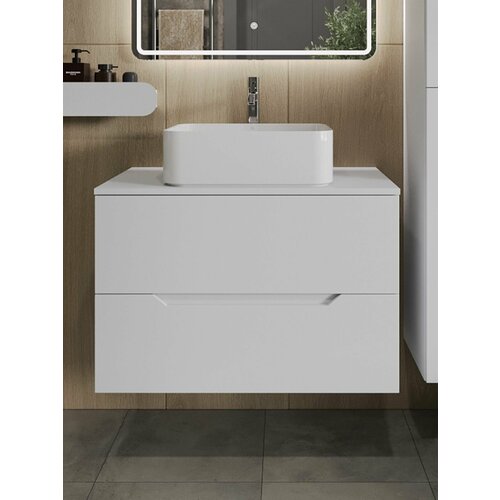 Купить Тумба с раковиной Orange Line 80 подвесная, 2 ящика, матовая белая с раковиной B02-460W с доставкой по всей России.