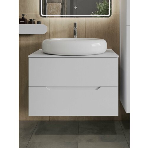 Тумба подвесная с накладной раковиной Orange Line отличается современным дизайном. Изготовлена из МДФ высокой плотности. Мебель покрыта пленкой ПВХ с технологией Soft Touch — ламинация класса премиум, с повышенными тактильными свойствами. Пленка обеспечивает дополнительную защиту мебели от влаги и перепадов температуры. На ящики установлены комплекты скрытых направляющих Hettich, обеспечивающие полное выдвижение и имеющие встроенную систему плавного и бесшумного закрывания. Исполнение - матовое. Материал раковины - фарфор. Отверстия в столешнице под раковину и смеситель монтируются самостоятельно.