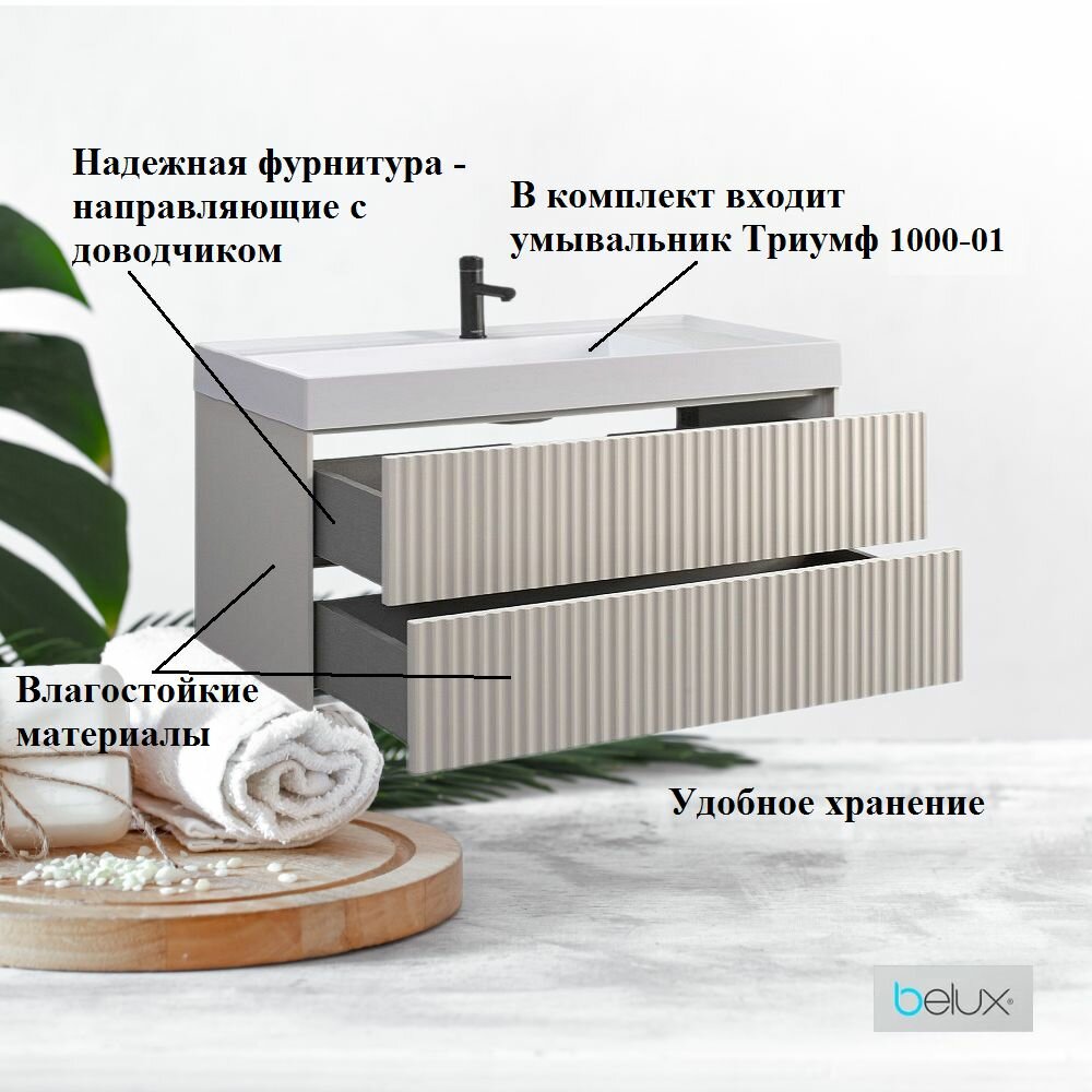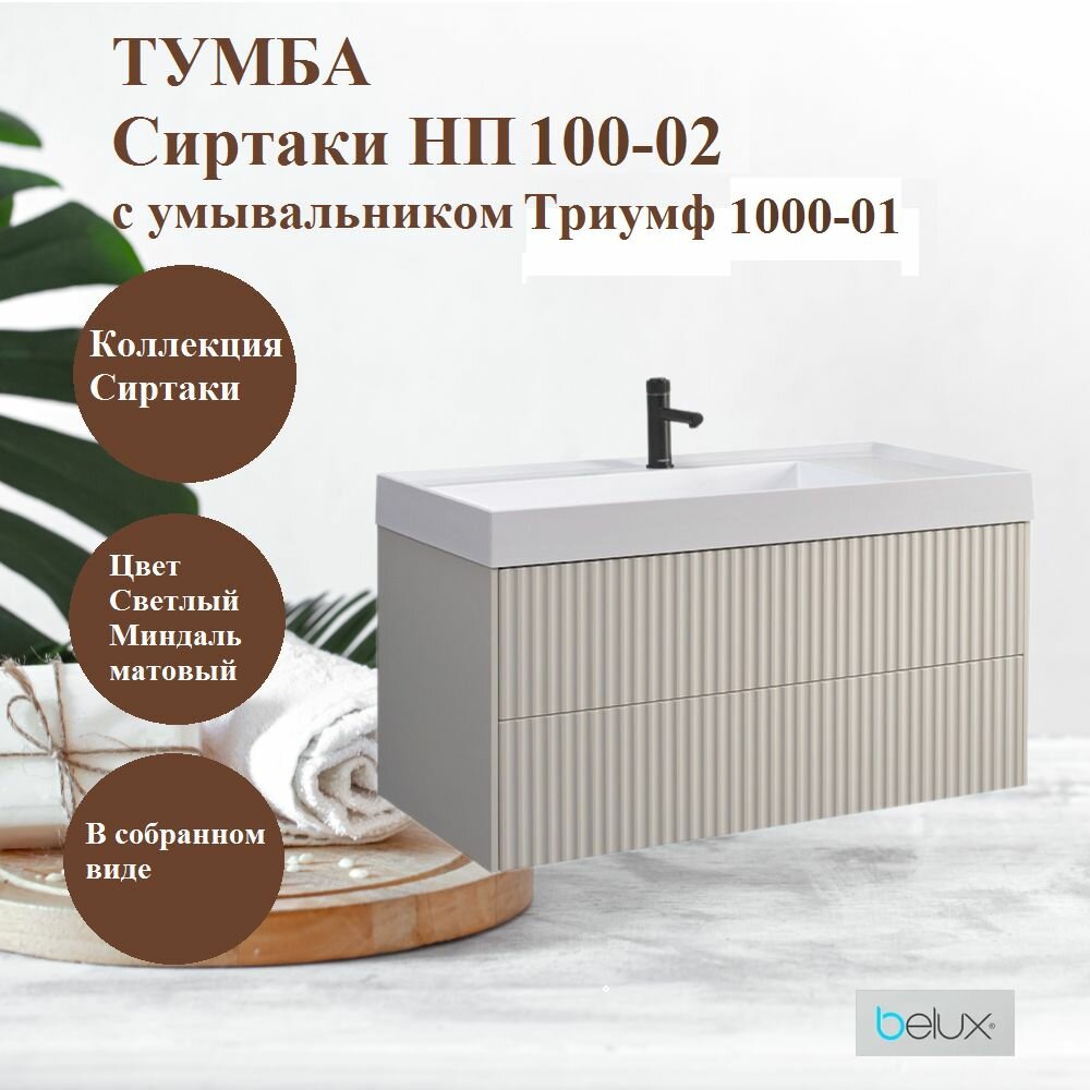 Купить Тумба с раковиной подвесная Belux Сиртаки 100 см, Светлый Миндаль матовый (180), полочка справа, чаша слева с доставкой по всей России.