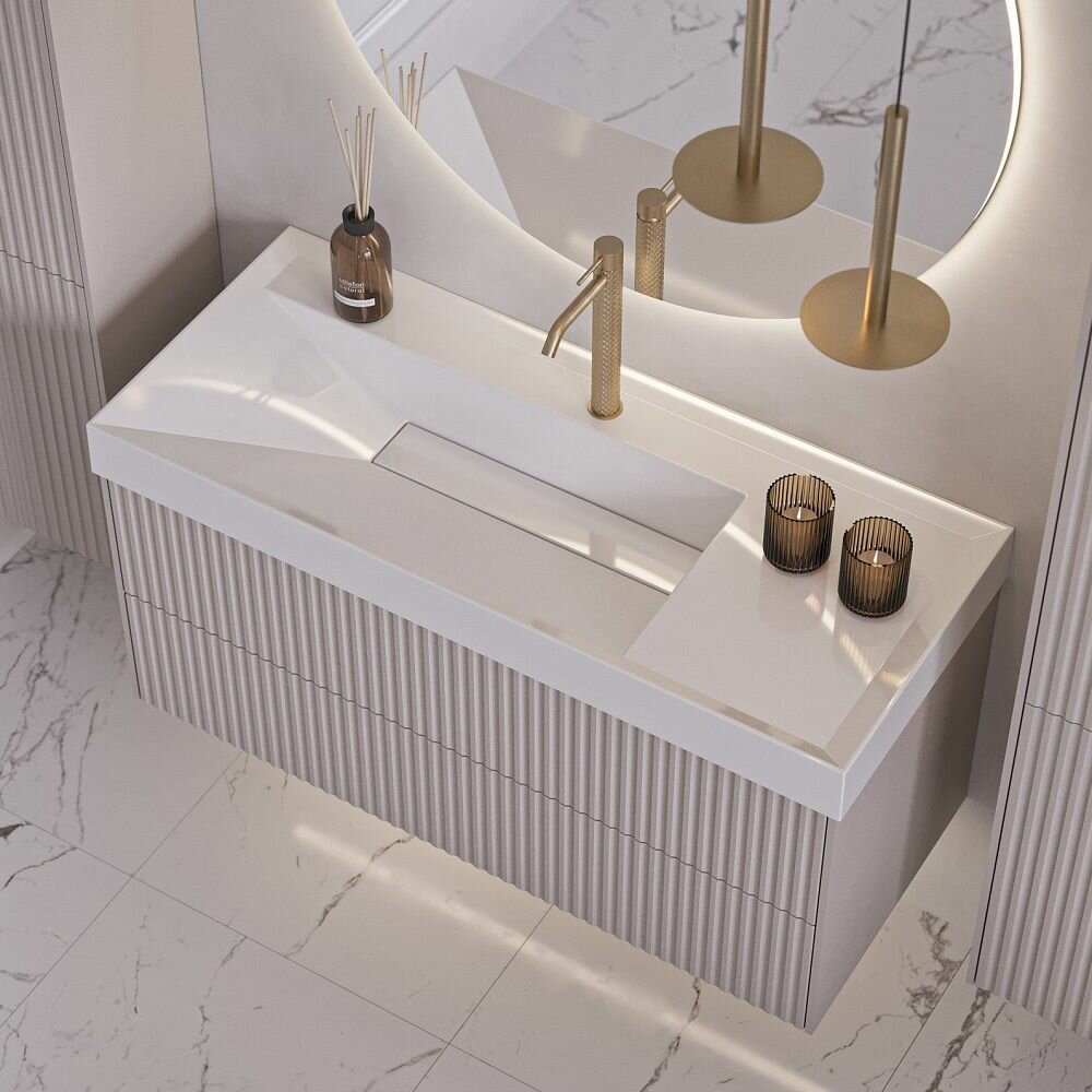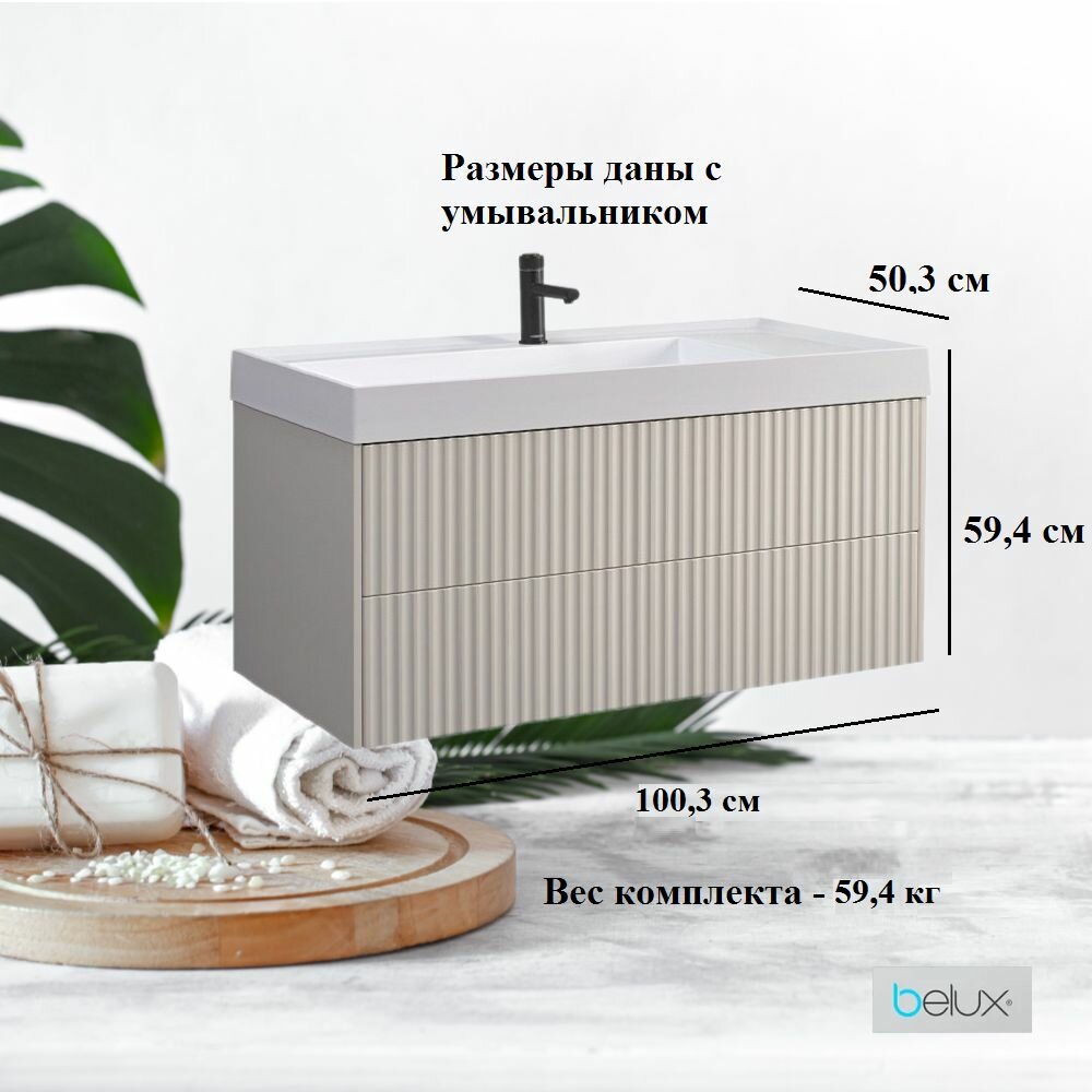 Тумба с раковиной подвесная Belux Сиртаки 100 см, Светлый Миндаль матовый (180), полочка справа, чаша слева: сравнение цен, характеристики, фото, актуальное наличие и цены.