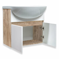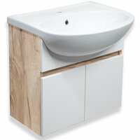Тумба с раковиной в ванную RUNO лада - модное и оригинальное решение для бюджетного оснащения ванной комнаты. Коллекция мебели лада выполнена в трёх цветах - классическом белом, в стильных и модных цветах - графит и крафтовый дуб . Тумба под раковину оснащена двумя распашными дверцами, каждая дверца укомплектована двумя петлями, верхняя с доводчиком, нижняя без доводчика. Корпус тумбы выполнен из материала ДСП с покрытием ламинат, фасад из МДФ с покрытием пленка ПВХ. В комплект тумбы входит керамическая раковина "Уют 50" (510*415мм). Раковина глубиной 19,5 см. Данный комплект поможет оборудовать небольшое помещение, благодаря своим компактым размерам. Добавит стиля и уюта в интерьер Вашей ванной комнаты. Мебель для ванной RUNO - красота и практичность в мелочах!