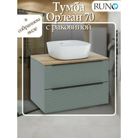 Тумба с раковиной подвесная Орлеан 70, зелёная-дуб натуральный (раковина Bella): сравнение цен, характеристики, фото, актуальное наличие и цены.